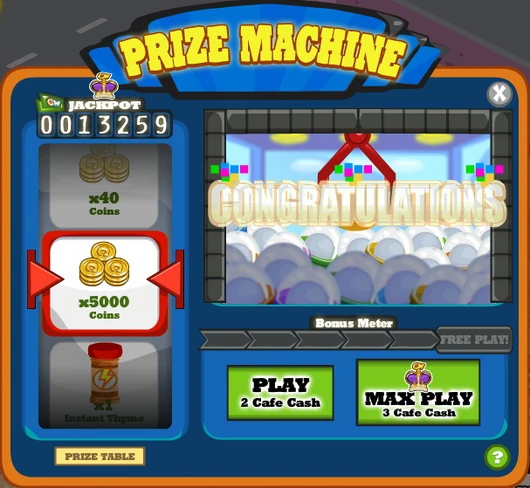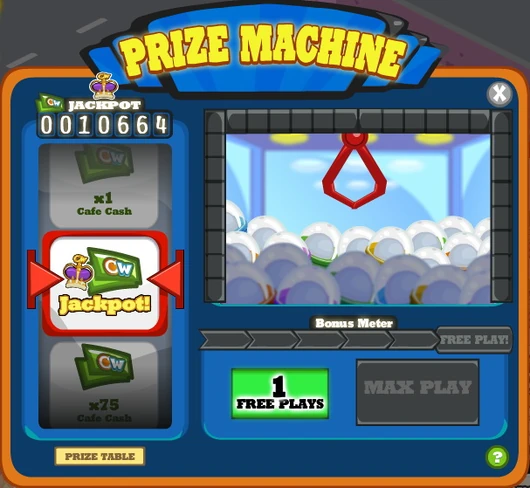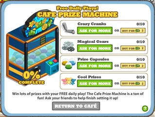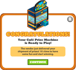 Cafe Prize Machine was first introduced on November the 25th 2010. It became available on December the 22nd 2010. You can win spices, lightning stoves,